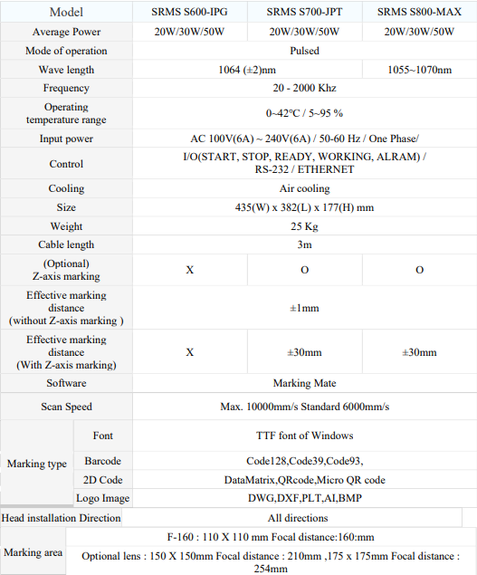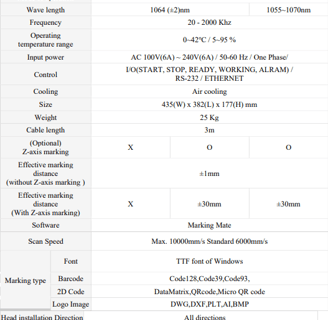 Compact Size Fiber Laser Marking Machine Data Sheet